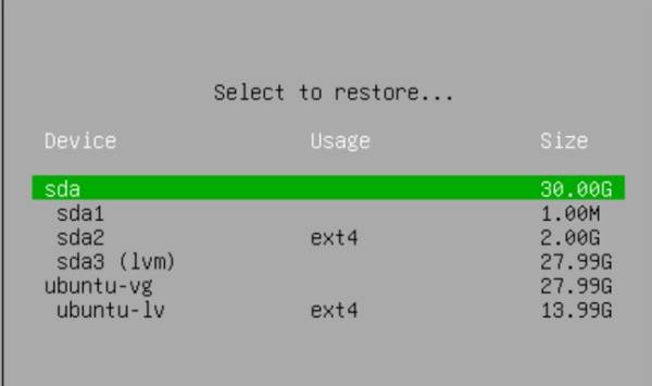 Далее будет представлен список всех точек восстановления для выбранного сервера. Выбираем нужную.