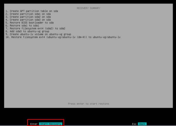 Далее будет представлена суммарная информация по выбранным пунктам. После нажатия кнопки Restore начнётся процесс восстановления. По окончанию восстановления данных нужно перезагрузить сервер в рабочий режим.