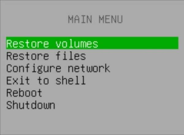 Для восстановления сервера из Veeam-образа необходимо примонтировать к серверу VeeamRecoveryMedia.iso и загрузиться с него. После загрузки в LiveCD-режиме меню будет иметь следующий вид.